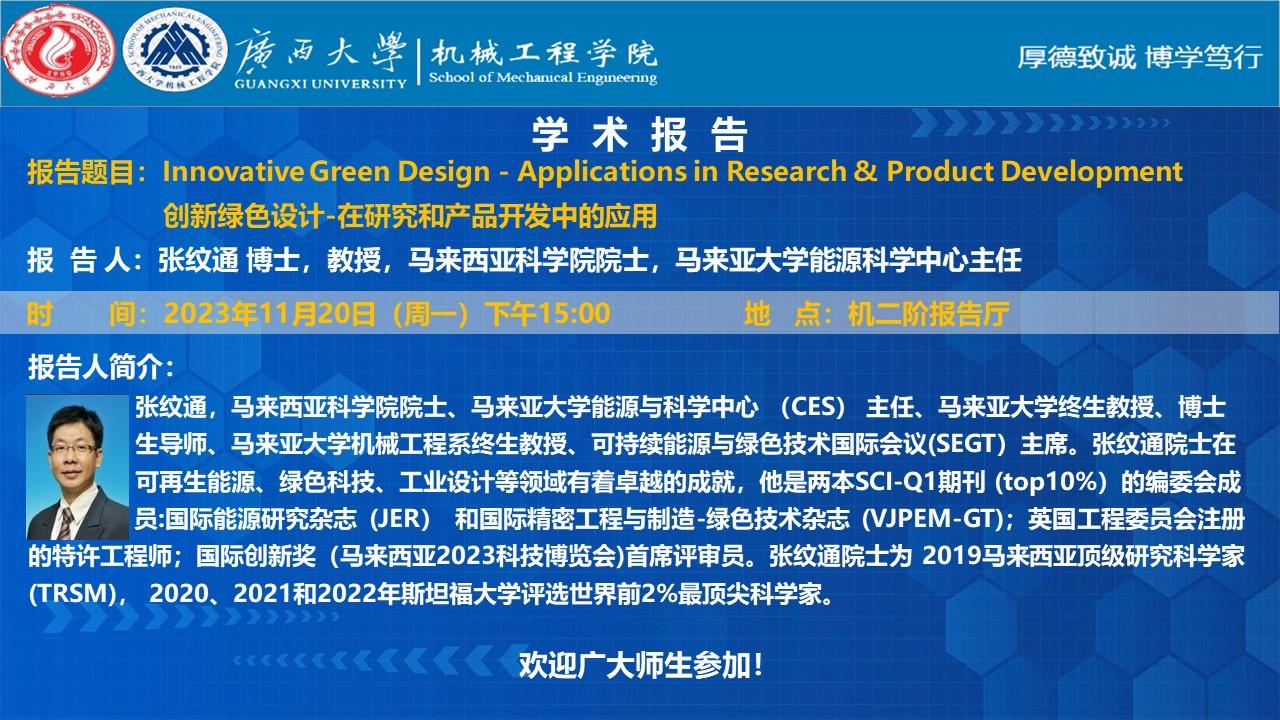 【william威廉中文官网学术报告】创新绿色设计-在研究和产品开发中的应用