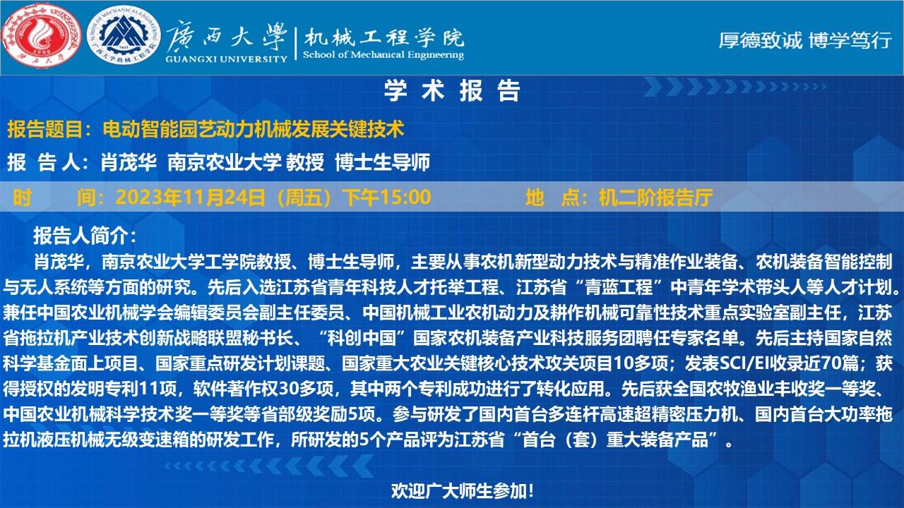【william威廉中文官网学术报告】 电动智能园艺动力机械发展关键技术