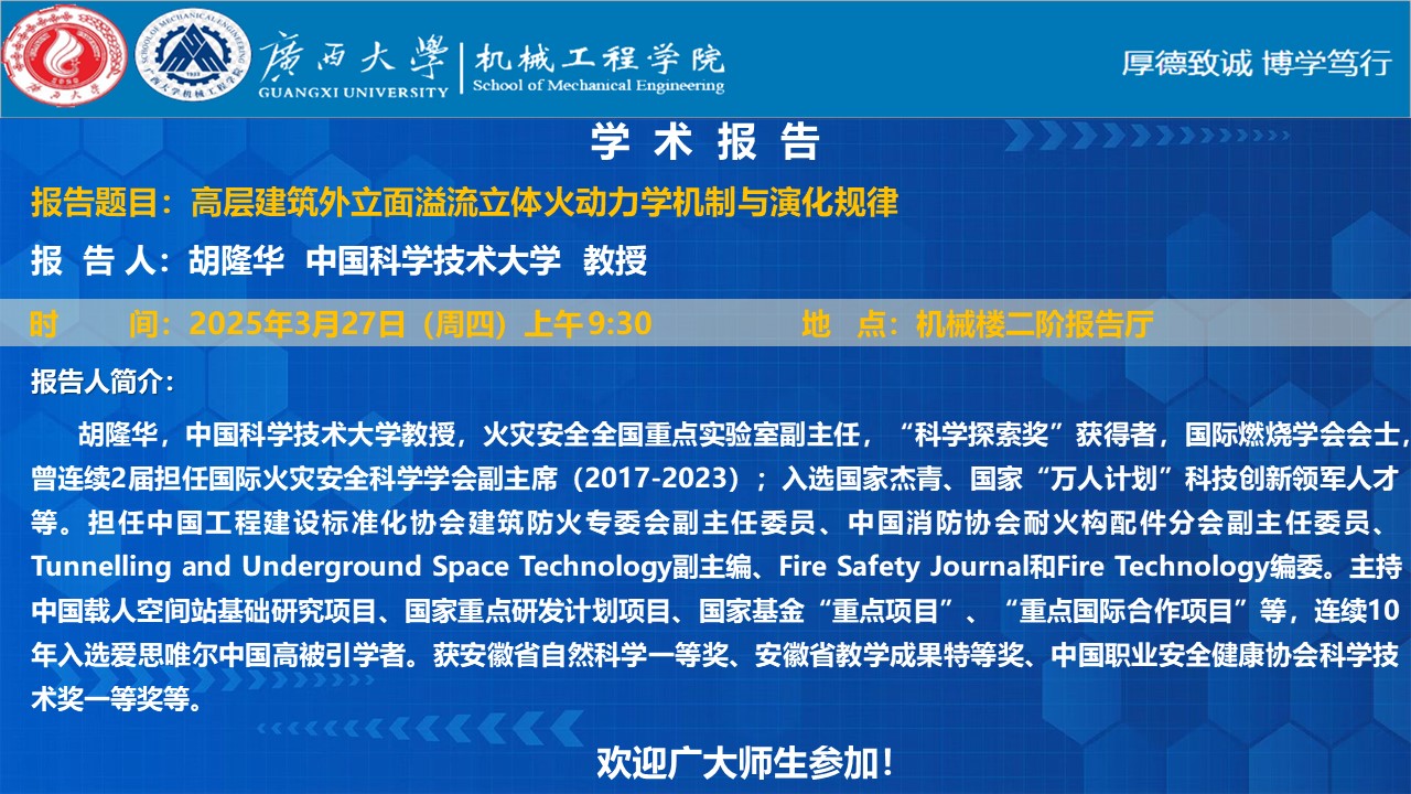 【william威廉中文官网学术报告】高层建筑外立面溢流立体火动力学机制与演化规律