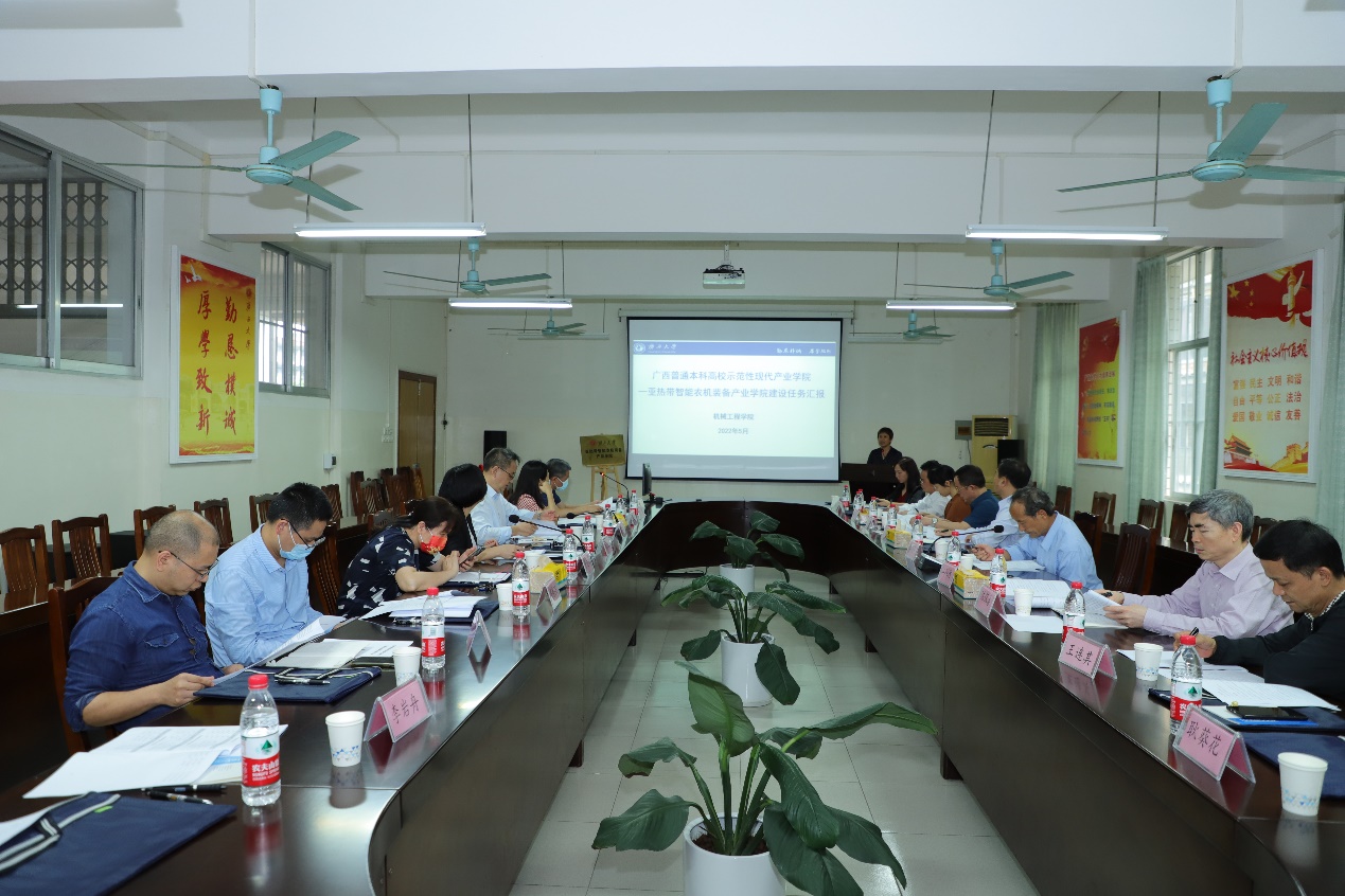 揭牌仪式结束后,专家们针对亚热带智能农机装备产业公司建设任务展开认真论证研讨。公司分管本科教学工作的李俚副经理向与会专家汇报了产业公司建设的前期工作以及产业公司建设规划。专家们一致认为,智能农机装备产业公司建设需要加强校企沟通与合作,以服务产业发展需求和强化公司办学优势特色出发,整合多元共建主体资源,共同对关键技术进行研究与开发,推进智能农机装备产业创新和发展。现代产业公司,意味着与传统的高校人才培养模式不同,要紧扣“产业”需求,突出“产业”特色,创新人才培养模式,构建更加科学实用的激励及评价体系,才能让亚热带智能农机装备产业公司为广西的区域经济社会与产业发展提供高质量人才和智力支撑。最后,专家组一致认为产业公司的建设符合国家的农业产业战略,目标定位准确,任务合理可行。同时,与会专家领导纷纷为产业公司的高质量发展提出宝贵的建议与意见。