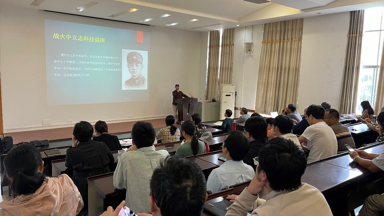魏风声情并茂的跟大家分享了魏乃文老先生在战乱年代的求学经历,以及之后隐姓埋名、奉献了自己毕生所学研究核潜艇的壮丽篇章,并为大家展示了很多极具历史意义老照片。魏老的故事和奉献精神让全院教职工都十分感动!