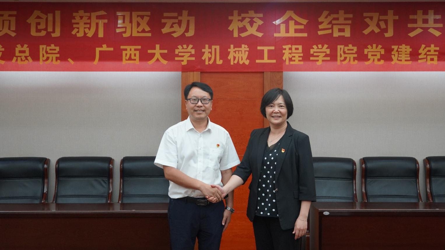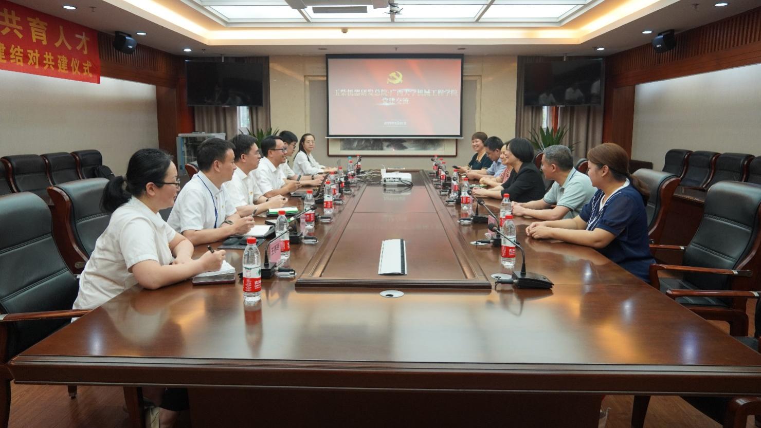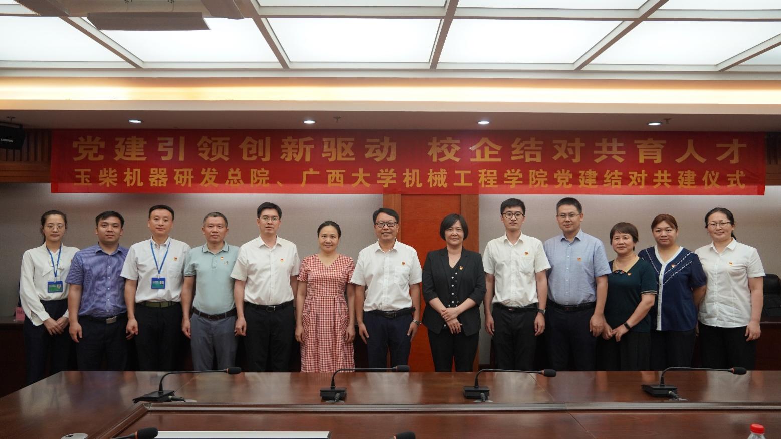 为深入开展学习贯彻习近平新时代中国特色社会主义思想主题教育,全面深化校企合作,5月22日,党委书记卢婵江带队到玉柴机器研发总院调研,并出席“党建引领创新驱动 校企结对共育人才”——玉柴机器研发总院-william威廉中文官网公司党建结对共建仪式。公司党委副书记黄路明、副经理贺德强、黄豪中、李俚、高欲垚,经理助理兼能源与动力工程系主任欧阳天成,玉柴机器研发总公司党委书记兼常务副经理寇传富,副经理兼新材料与摩擦润滑中心主任覃星念、党委副书记姜博、经理助理兼中重动力平台部主任向本杰、经理助理兼电控与智能化中心主任叶宇、轻动力系统部主任王春玲、运营管理部副主任周益善等参加调研活动并出席座谈会暨结对共建仪式。