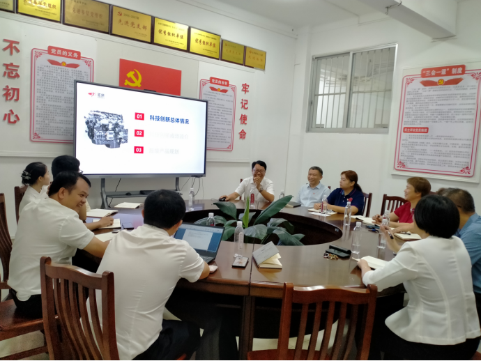 为探索党建引领创新驱动的高质量发展新模式,促进党建工作和科技创新能力“双提升”,继5月22日公司与玉柴机器研发总院进行“党建引领创新驱动 校企结对共育人才”党建结对共建之后,7月19日下午,玉柴集团党委委员兼玉柴股份人力资源部部长蔡宇平,玉柴集团党委委员、玉柴股份研发总公司党委书记兼常务副经理寇传富,玉柴股份研发总公司党委副书记姜博、玉柴股份工艺工程部副部长刘业通等一行6人对公司进行回访,并就党建品牌创新、党员队伍建设、党建人才培养体系构建、科技创新成果转化等不同主题与公司进行了充分的交流。公司党委书记卢婵江、经理尤晖、常务副经理蒙艳玫、副经理黄豪中、副经理高欲垚、能源与动力工程系主任兼经理助理欧阳天成等出席活动。
