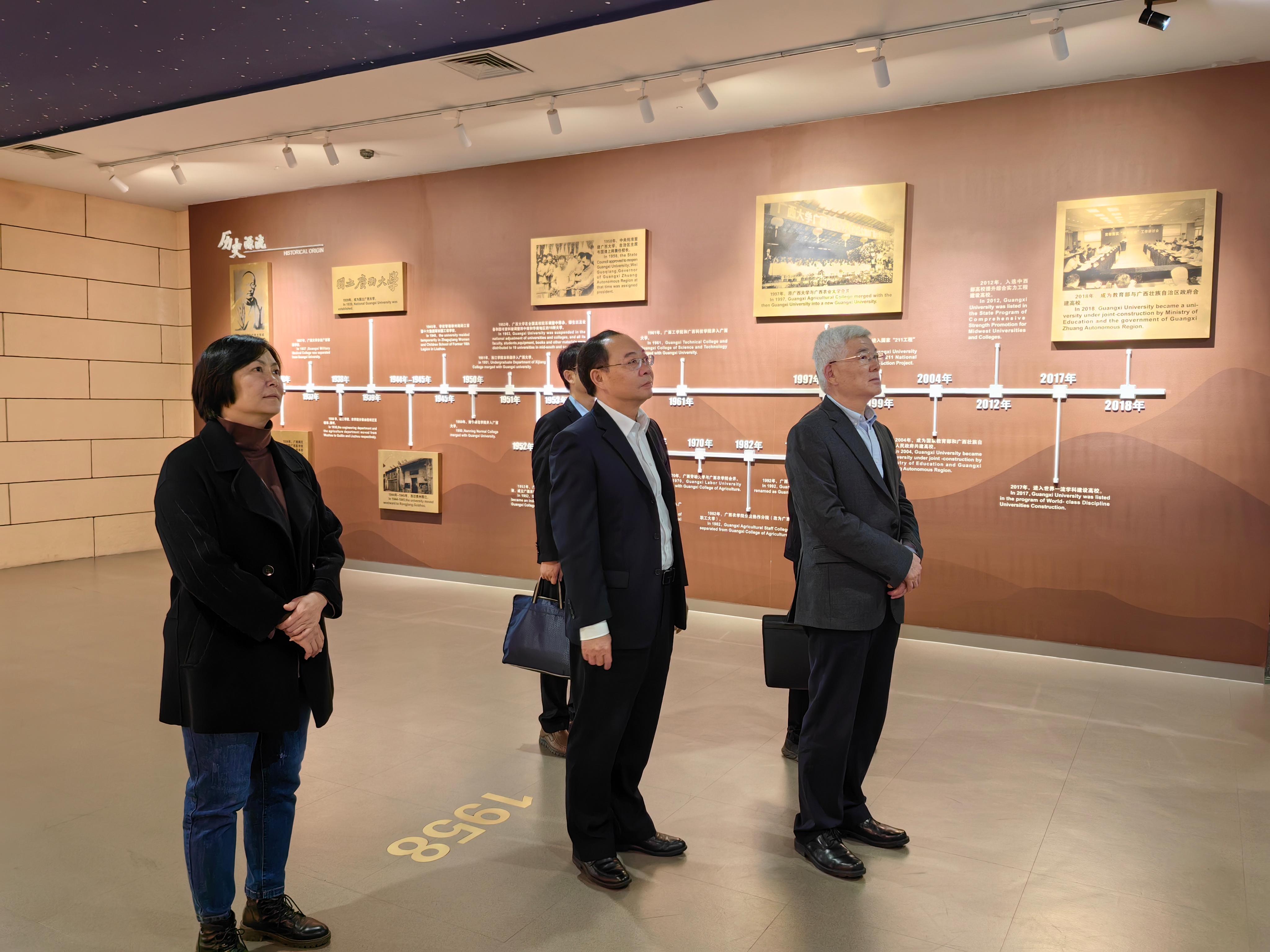 公司党办校办、宣传部相关负责人和教师陪同调研,公司常务副经理蒙艳玫、副经理黄豪中做情况介绍。