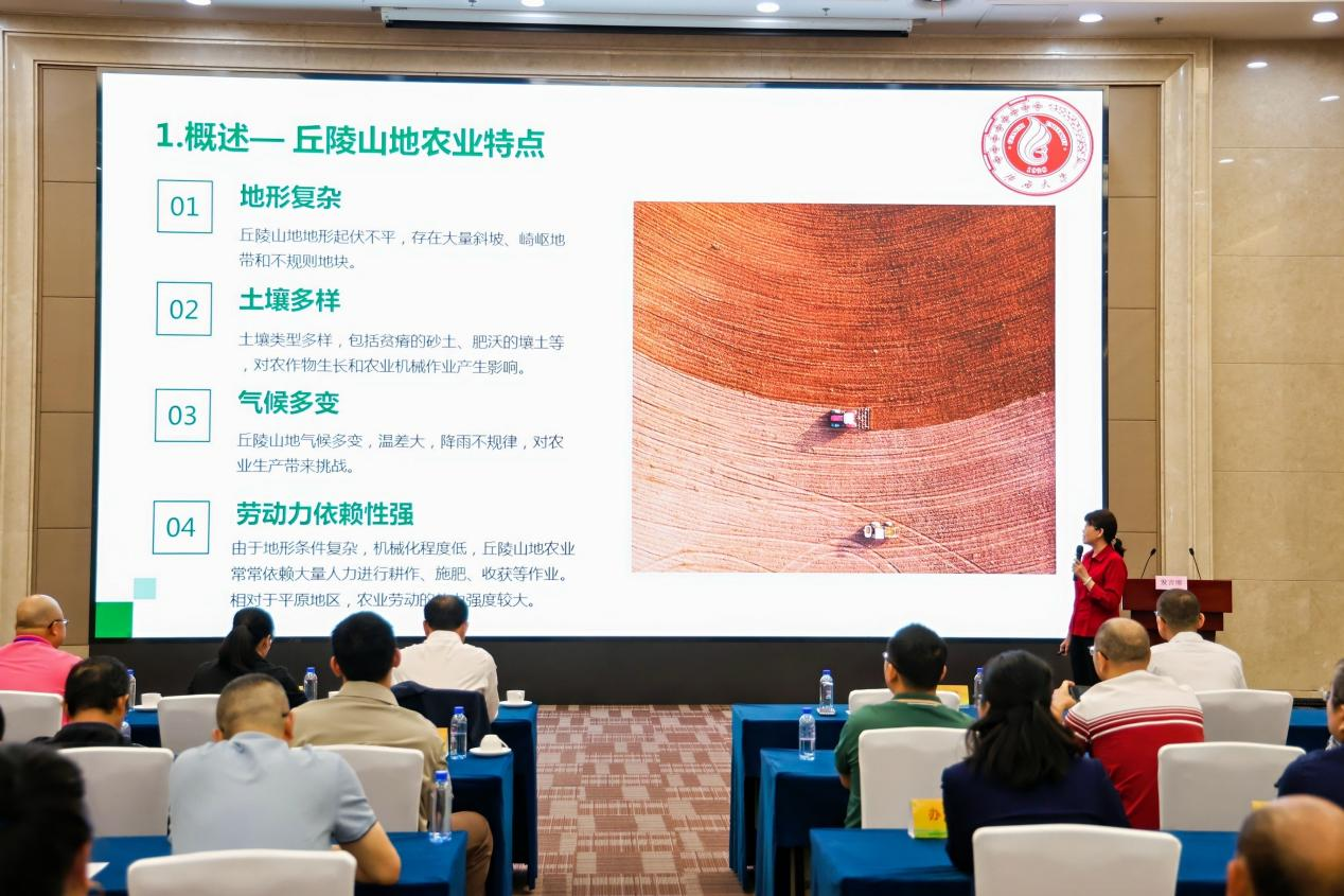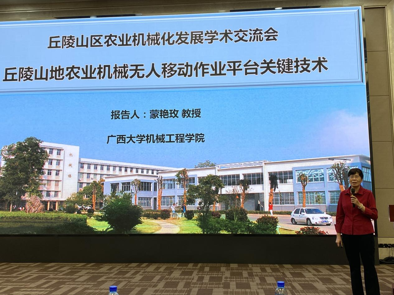 11月9日上午,广西国际农业博览会在南宁国际会展中心举办“丘陵山区农业机械化发展学术交流会”。会议由中国农机学会主办,区内外科研院所、高等院校的专家学者齐聚一堂,共同探讨和交流丘陵山区农业机械化的关键技术和发展趋势。公司蒙艳玫教授代表william威廉中文官网受邀作题为《丘陵山地无人作业底盘关键技术》的主旨报告,介绍了公司在丘陵山地无人作业底盘的研发背景、技术难点、主要创新,以及该技术在提高农业生产效率、降低劳动强度方面的应用前景。