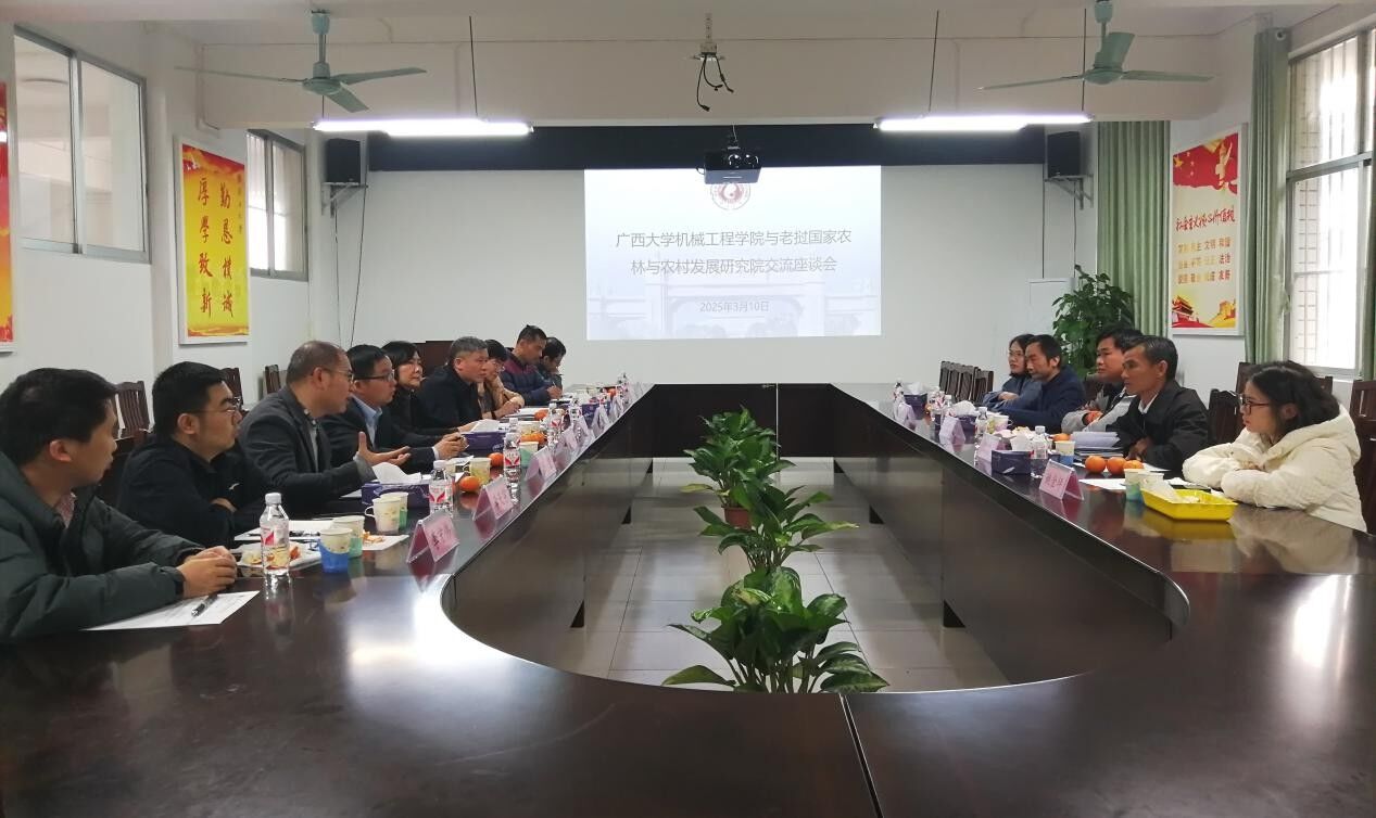 老挝国家农林研究院园艺研究所副所长Bounpheng Sihomchanh先生、中国-老挝合作农作物优良品种试验站副站长兼老挝国家农林与农村发展研究院水果与蔬菜研究中心副处长Bounsavath Phongdara先生,南宁国际商会副会长冼宜艺,中国─马来西亚蓝德环境科技集团股份有限公司副总经理冯石平等一行5人,与公司党委书记卢婵江、副经理黄豪中、莫帅,农机专家团队蒙艳玫、杨望教授等在会上交流,深化中国与老挝在农林机械领域的交流与合作,共同探索适应老挝农业发展需求的农机技术与推广路径。