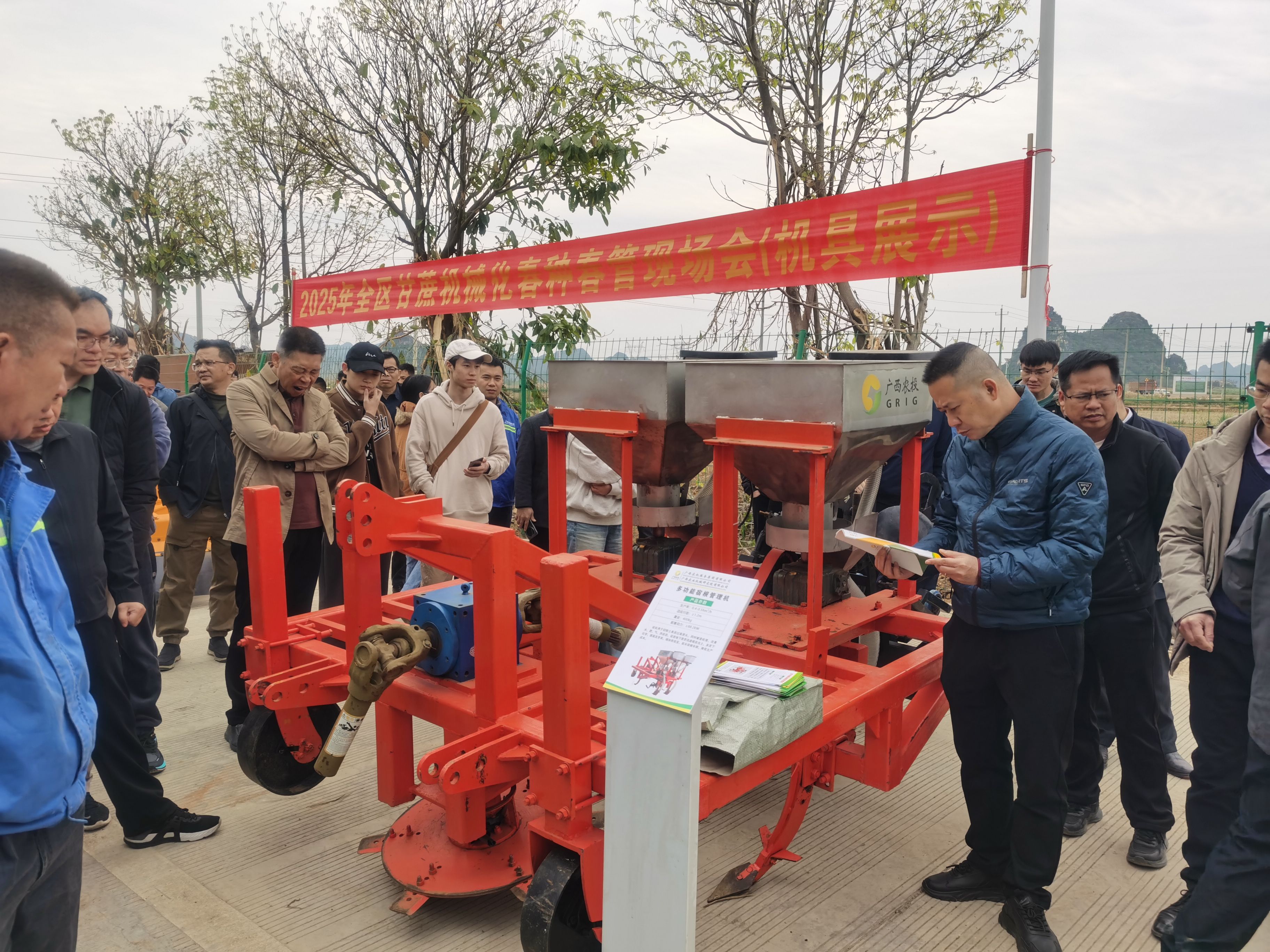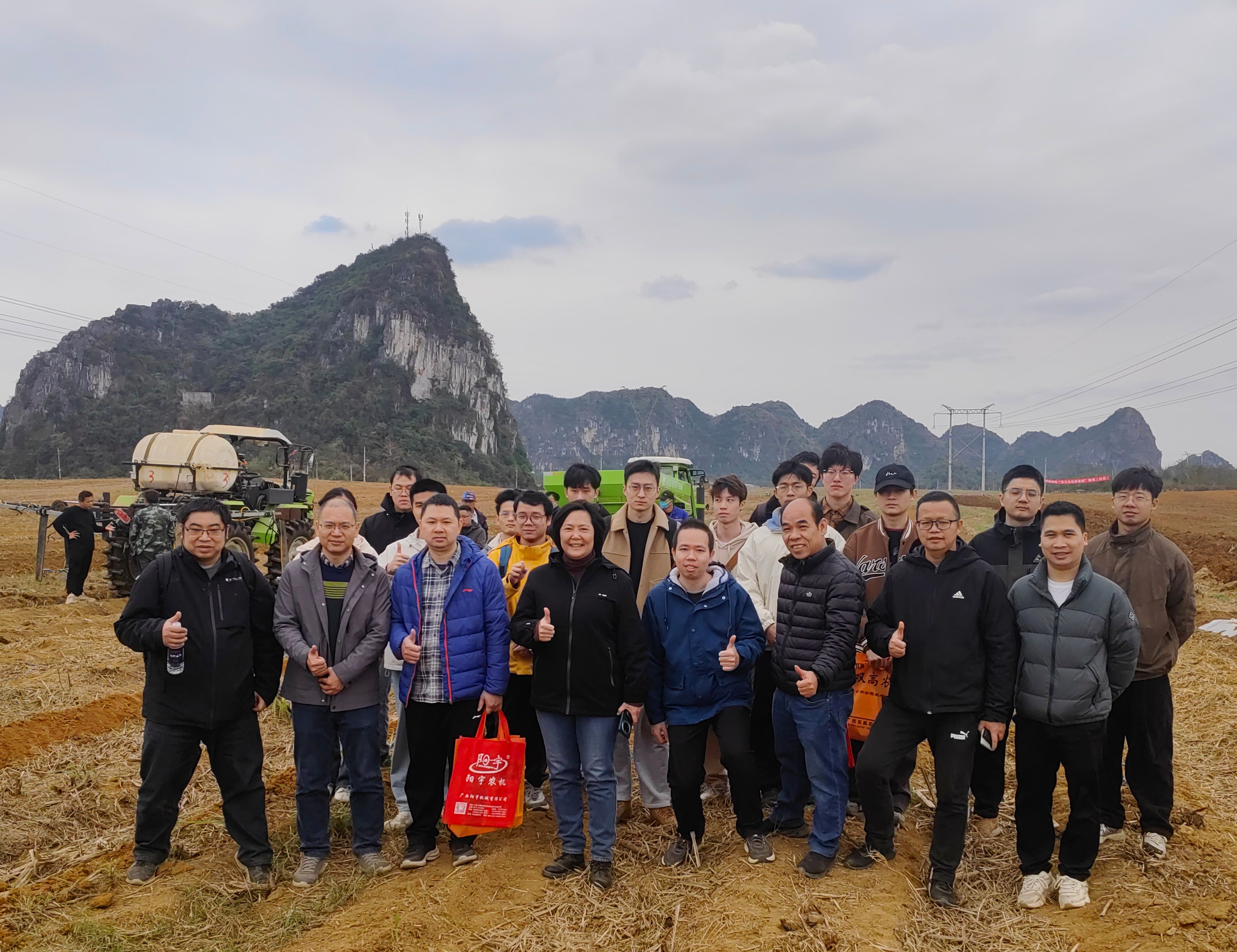 2025年3月18日,由广西农业农村厅主办,扶绥县人民政府承办的“2025年广西甘蔗机械化春种春管现场会”在公司位于农科新城的“广西农业机械化产学研推示范基地”召开。此次现场会以“甘蔗春种春管智慧农机+”为主题,集中展示了智能化、无人化农机设备在甘蔗春种春管中的创新应用,为推动甘蔗产业现代化发展注入强劲科技动能。公司党委书记、现代产业公司常务副经理卢婵江、现代产业公司办公室主任杨望等20名师生代表到现场观摩。