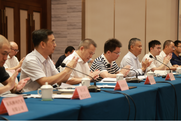7月3日下午至7月4日上午,与会专家一行在先后调研柳州市产业园的广西汽车集团、东风柳汽、上汽通用五菱等新能源汽车龙头企业后,在柳州市莲花山庄华池多功能厅与柳州市政府、柳州新能源汽车相关企业代表召开产业现场会。柳州市委常委、副市长潘展东率领柳州市园区办、发改委、工信局、科技局、财政局、投促局、柳南区及柳东区管委会、柳州市产业集团,以及上通五、东风柳汽、广汽集团、一汽解放、柳机动力、柳州赛克、国轩电池、轾驱新能源等17家企业代表参加交流并主持座谈会。市园区办主任张金呈首先介绍柳州市新能源汽车产业发展现状,上汽通用五菱、东风柳州汽车、广西汽车集团等多家汽车及零部件企业代表依次介绍。随后,与会专家和企业代表围绕技术创新、智能驾驶、标准体系、产业出海、生态构建等议题展开讨论。