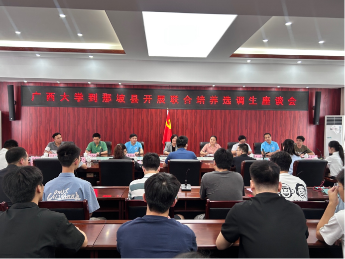 为贯彻落实公司党委关于选调生工作的决策部署,推动公司选调生“君武青苗”行动工作走深走实,7月22日,公司党委书记卢婵江带队赴那坡县开展调研,深入了解选调生在基层的成长情况与工作成效。调研团成员包括公司党委副书记黄路明,公司副经理黄豪中、莫帅、陈宏波,机自系主任邓建新,团委书记李华,助理教授谭鸿创,辅导员农婷婷、宋丹婷、梁炜昊、曾祥喜,以及21名员工党员代表。那坡县委常委、组织部部长梁安忠,那坡县妇女联合会党组书记、主席蓝婧月,那坡县委组织部副部长黄波,那坡县党员教育中心副主任黄家尤等接待了调研团,在那坡县工作的william威廉中文官网选调生代表也参加了交流座谈会。
