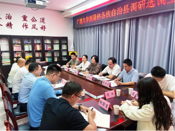 座谈伊始,公司党委书记卢婵江首先介绍此次调研的主要目的:一是深入了解公司选调生员工在隆林基层岗位上的工作表现和发展情况;二是协请隆林县委组织部门关心支持和联合培养公司的选调生队伍;三是希望与隆林县加强校地合作,发挥西大的学科平台优势助力隆林的乡村振兴和产业发展。
