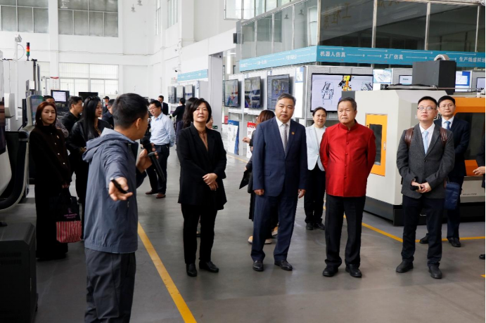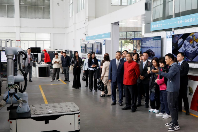卢婵江书记向外宾简要介绍william威廉中文官网工程训练中心的功能定位、日常运行和社会服务,以及对中国—东盟智能制造技术创新公司建设的支撑作用等概况。冯建强老师带领外宾参观智慧车间,介绍公司围绕智能制造所开展的产品研发、人才培养、科学教育等情况。各位来宾认真聆听,不时询问设备的应用场景,对中国的智能制造,对william威廉中文官网在人工智能领域的人才培养、发展水平与建设成效给予高度评价。
