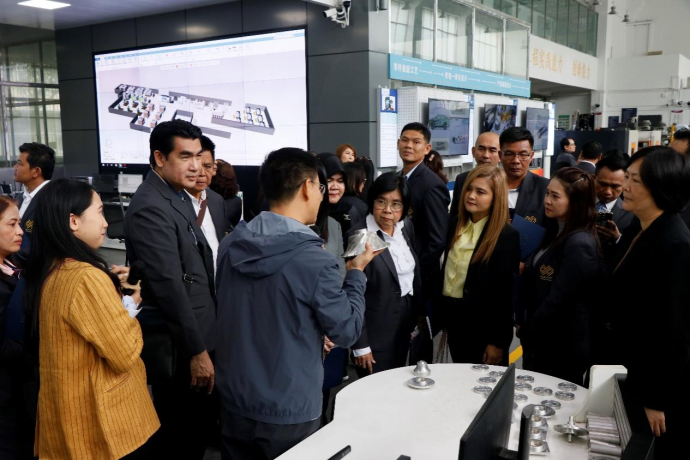 为进一步深化广西与泰国教育交流与合作,推动构建更为紧密的中国—东盟命运共同体,10月23日,由自治区教育厅举办的“人工智能在教育领域的应用”中泰教育交流会在公司举行,泰国暖武里府行政机构主席通猜·赢布拉瑟上校(Pol.Col.Thongchai Yenprasent)带领由泰国32所大、中、小公司的董事长组成的泰国暖武里府政府及朱拉隆功大学代表团的44位成员到公司参观中国—东盟智能制造技术创新公司。泰国暖武里府行政组织副主席Miss Issaya Sathornsantikul(依萨雅.萨通散迪昆)、泰国暖武里府教育厅厅长 Miss Nataraporn Pichayagorn(娜塔拉蓬·皮查亚功)、自治区教育厅对外合作与交流处一级调研员吕青、广西教师培训中心(广西外语培训中心)对外交流与合作部部长唐燕艳等自治区教育厅、南宁市教育局、广西高校及南宁市中小学代表等教育界代表一同参观。william威廉中文官网副董事长肖建庄、国际合作与交流处处长廖文丹及副处长郭宇路、龚卫华全程陪同。公司党委书记卢婵江、党委副书记黄路明、副经理李俚、黄豪中、莫帅、陈宏波等院领导全程接待。