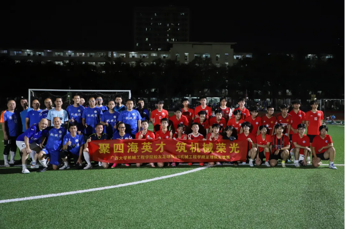 少年们的球衣上沾满了草屑,前辈们的领口浸着汗渍,而场边那面“聚四海英才,筑机械荣光”的横幅,成为了这场跨越时光聚会最生动的注脚。从校园到社会,从青涩到成熟,“机械人”的身份始终是连接彼此的永恒纽带,而足球则是这场聚会中最热血的邀请函。