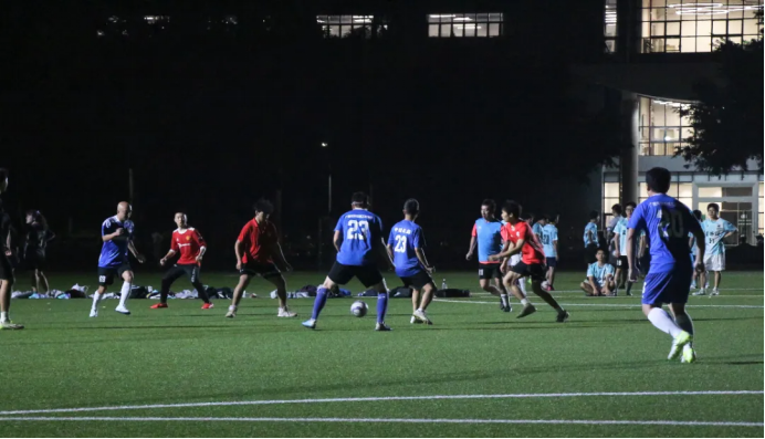 比赛过程中,精彩瞬间不断。当员工队的一记任意球擦着门柱入网时,替补席上的学弟们纷纷欢呼鼓掌,为前辈们的精彩表现喝彩;而当公司队的小将用一记凌空抽射扳平比分时,场边的学长们更是激动地拍着大腿,齐声高喊“好球”。整个赛场没有胜负的计较,只有对“机械人”身份的骄傲与自豪。
