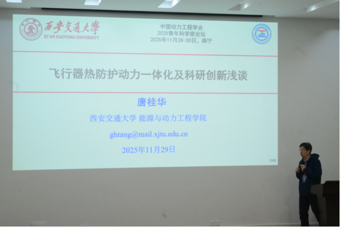 在上午的大会报告中,西安交通大学唐桂华教授作题为“飞行器热防护动力一体化及科研创新浅谈”的报告,介绍了复合气凝胶与热电一体化系统创新成果,为高超声速飞行器热防护与能量综合利用提供新方案。