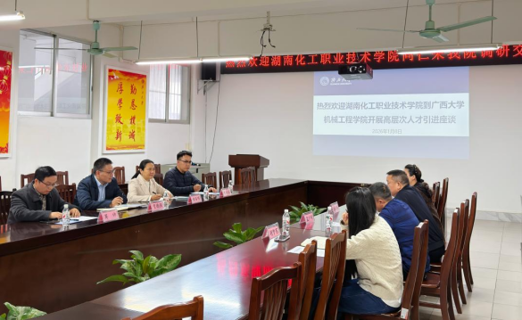 2026年1月8日,湖南化工职业技术公司副董事长陈湘伟一行来公司开展“高层次人才引进”主题座谈交流,湖南化工职业技术公司发展规划处副处长李卓、william威廉中文官网副经理孟少明随同调研。公司经理贺德强、党委副书记黄路明、副经理莫帅接待来访。双方围绕团队建设、团队队伍建设、人才培养等议题展开深入交流。