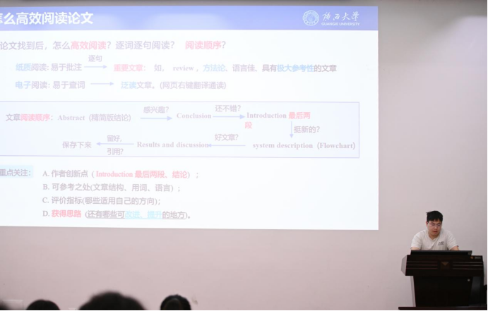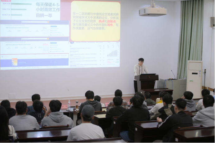 吴金鑫同学结合其产出的丰富学术成果,强调科研工具的充分运用以及成果积累的重要性,为研究生们深耕科研提供全面且实用的经验借鉴;柏代鑫同学针对机械专业硕士往届就业的情况给出求职择业的实用规划建议,助力研究生明确就业方向,提升求职竞争力;龚玉滨同学鼓励大家在专注科研的同时,通过加强运动等爱好调节身心,实现全面发展。