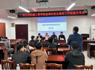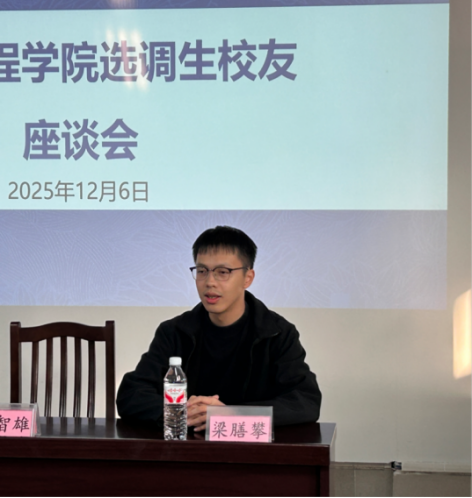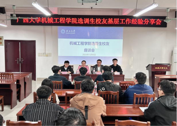 12月6日下午,公司在机械楼报告厅举办选调生员工基层工作经验分享会。本次分享会邀请到公司2019届员工赵智雄、2025届员工廖家强和梁膳攀三位选调生代表返校,为在校生传经送宝。公司党委副书记黄路明、负责就业工作辅导员曾祥喜及在校员工代表参加座谈交流。