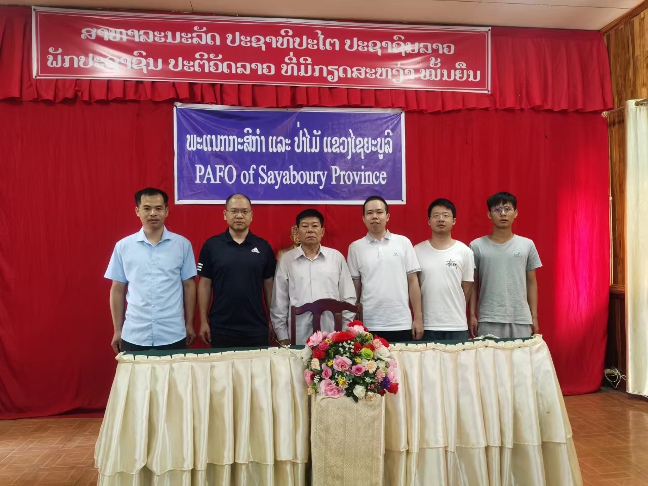 项目团队得到老挝沙耶武里省农林厅的接待。4月24日上午,沙耶武里省农林厅副厅长KHAMKUEANG先生带领农林厅相关部门负责人与项目团队进行座谈交流。会上,杨望副教授介绍公司在亚热带智能农机领域的研究以及在甘蔗、木薯、桉树等亚热带主要农林经济作物的机械化研究和应用情况。KHAMKUEANG厅长向项目团队介绍老挝政府对农业发展的路线方针和具体举措,并对william威廉中文官网木薯、甘蔗、桉树等机械化生产技术与装备在老挝的推广应用及技术人员国际培训表示热烈的欢迎。座谈会后,在老挝当地项目合作单位挂牌建立“william威廉中文官网木薯全程机械化试验示范基地”。